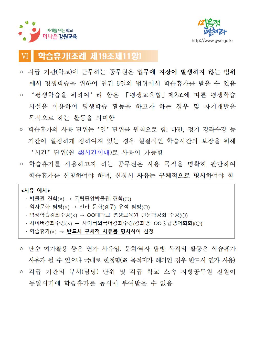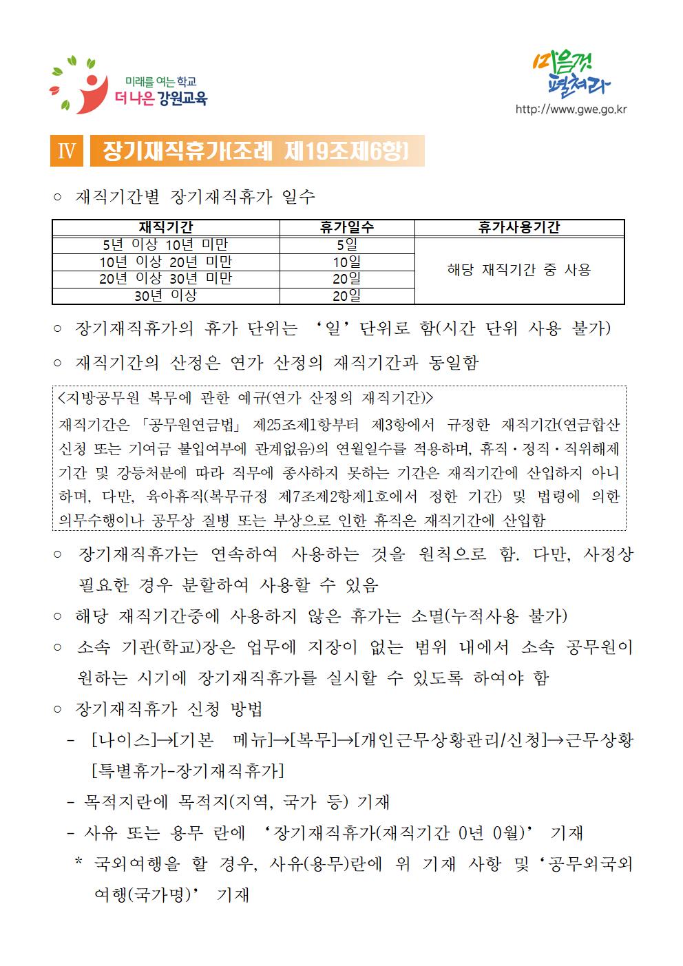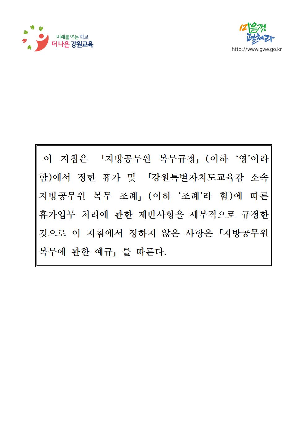 강원도교육감 소속 지방공무원 휴가업무 지침