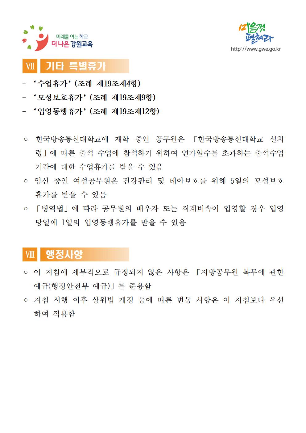 강원특별자치도교육감 소속 지방공무원 휴가업무 지침