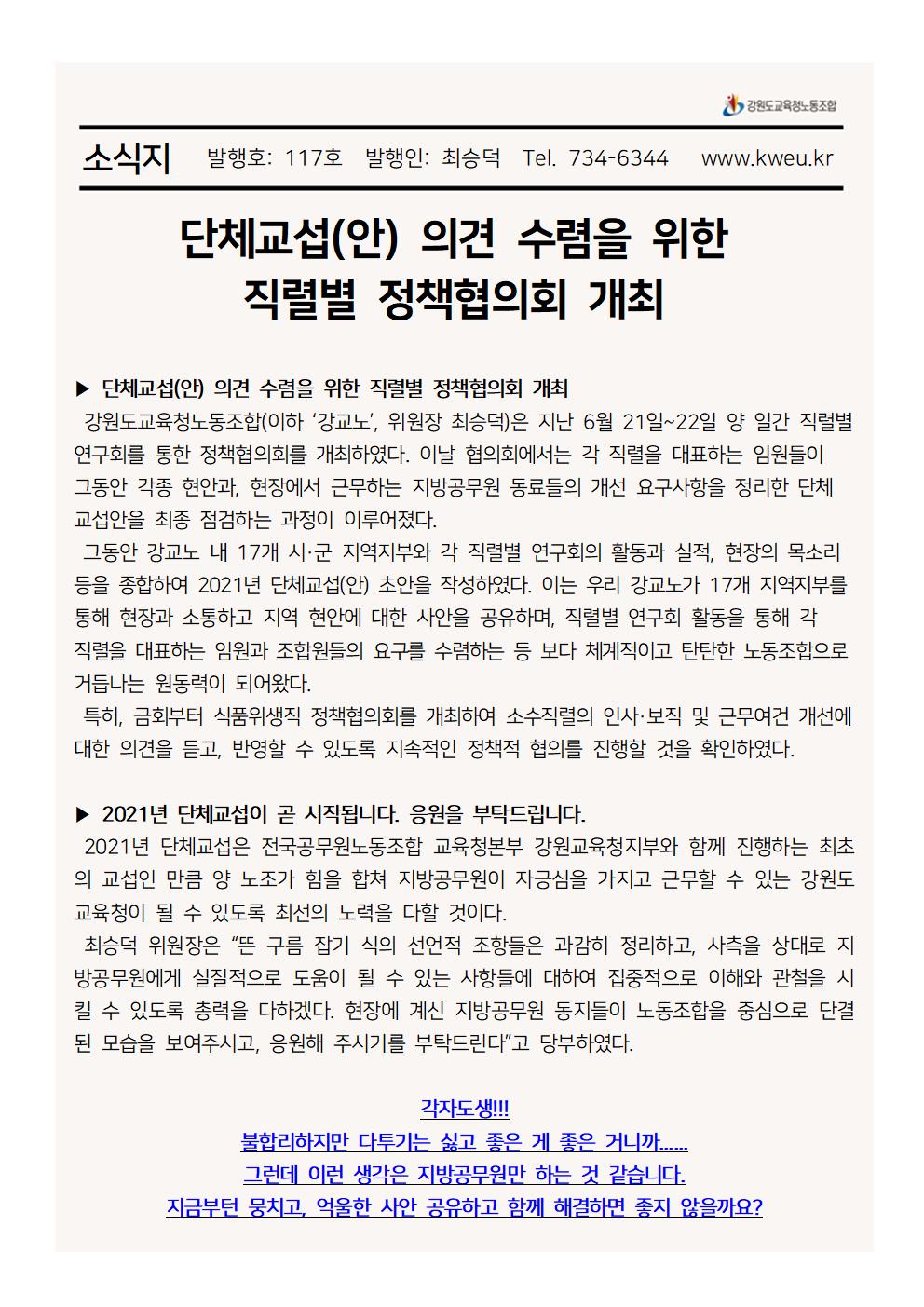 단체교섭(안) 의견 수렴을 위한 직렬별 정책협의회 개최
