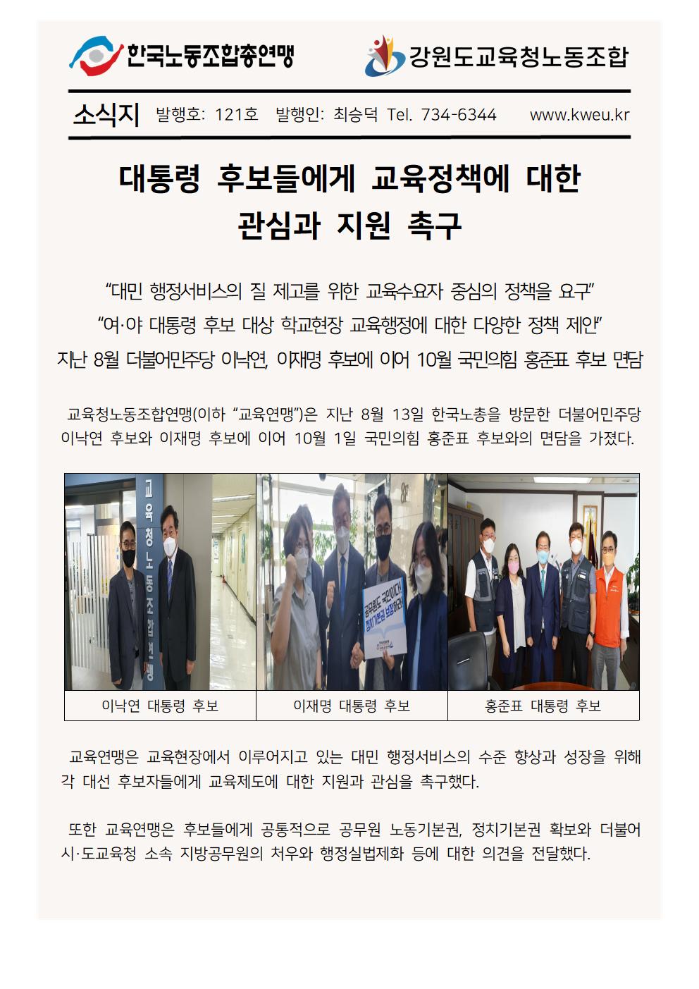 대통령 후보들에게 교육정책에 대한 관심과 지원 촉구