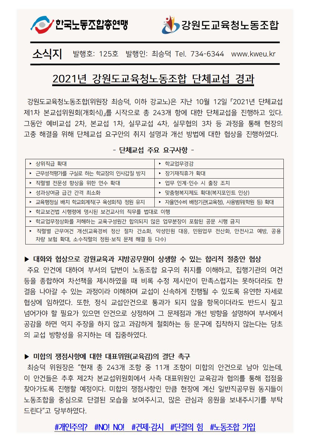 2021년 강원도교육청노동조합 단체교섭 경과
