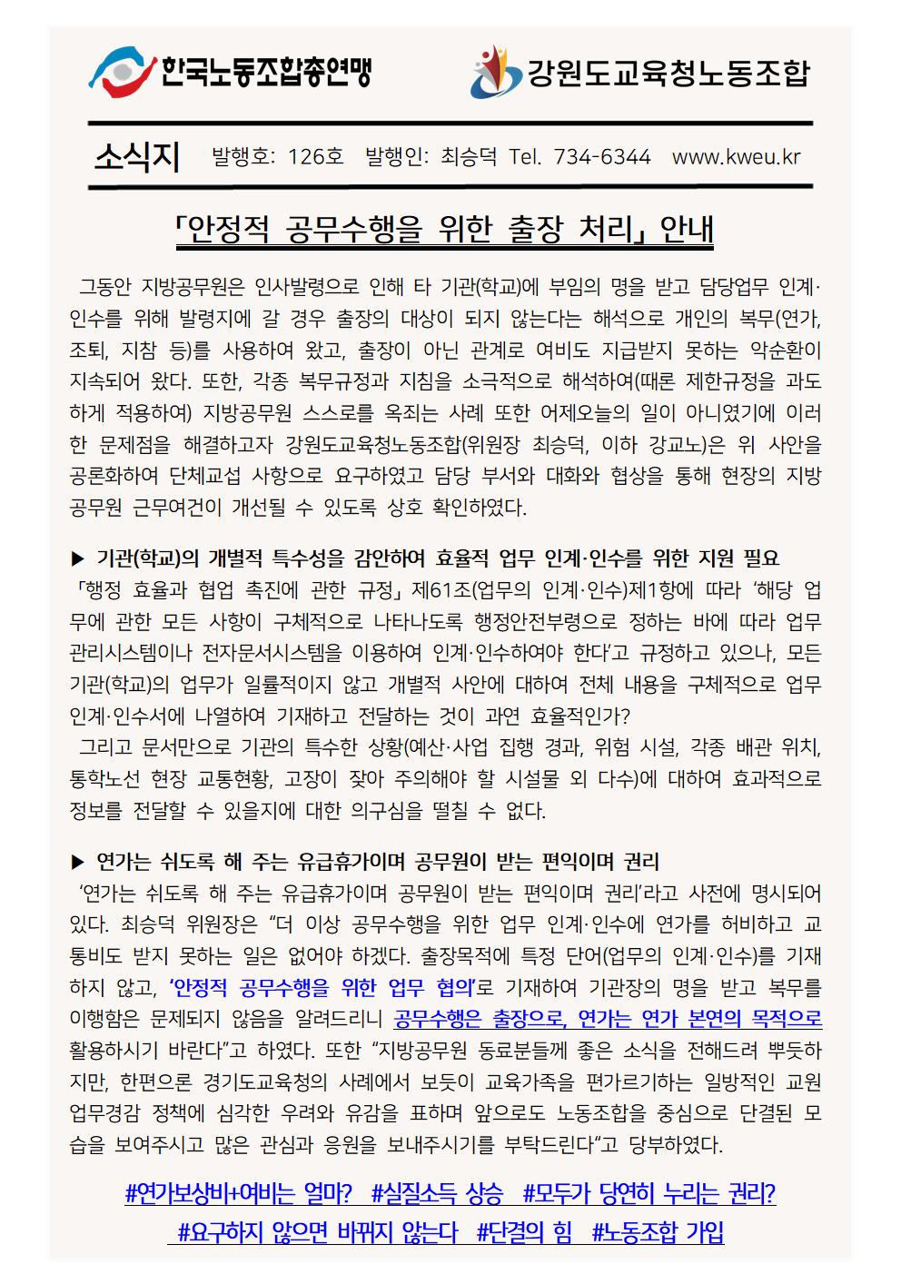 「안정적 공무수행을 위한 출장 처리」 안내