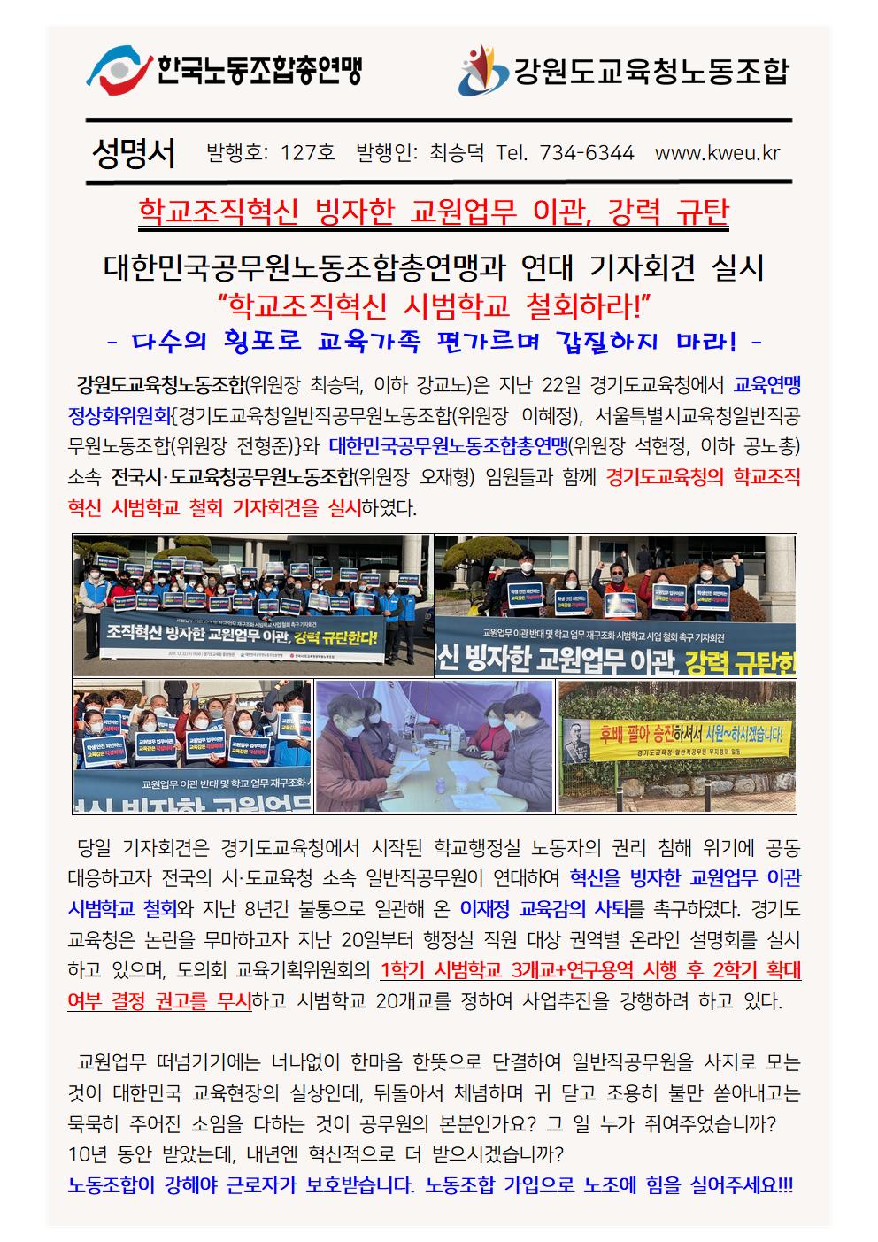 학교조직혁신 빙자한 교원업무 이관, 강력 규탄
