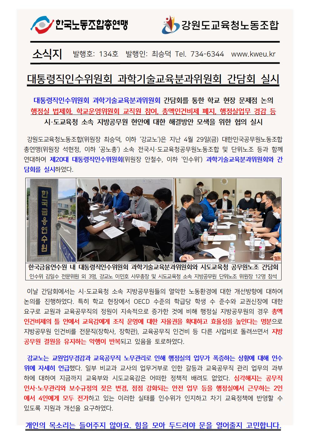 대통령직인수위원회 과학기술교육분과위원회 간담회 실시