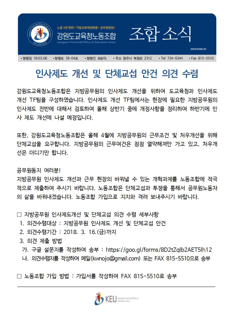 인사제도개선 및 단체교섭 의견서 [제18-04호]