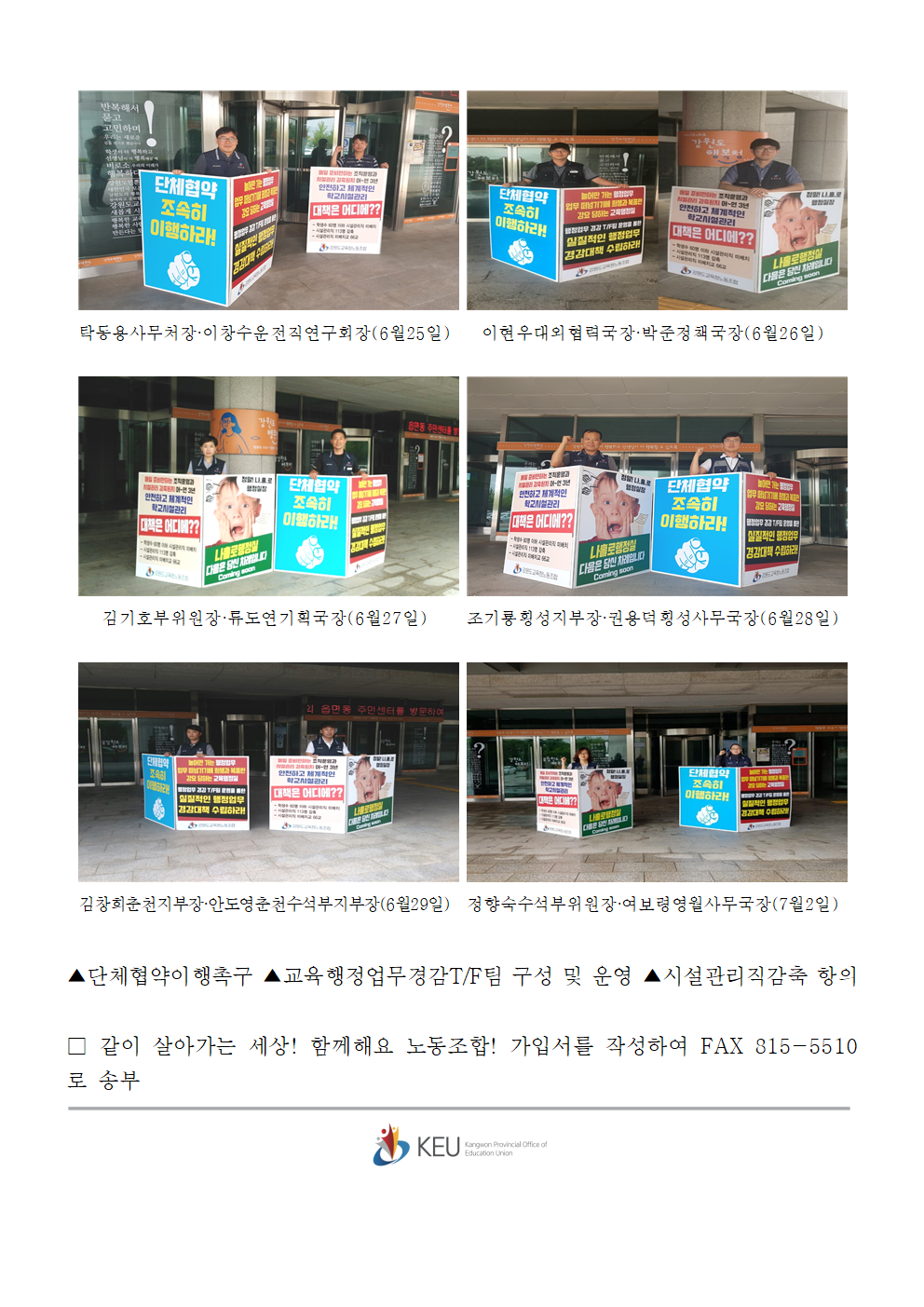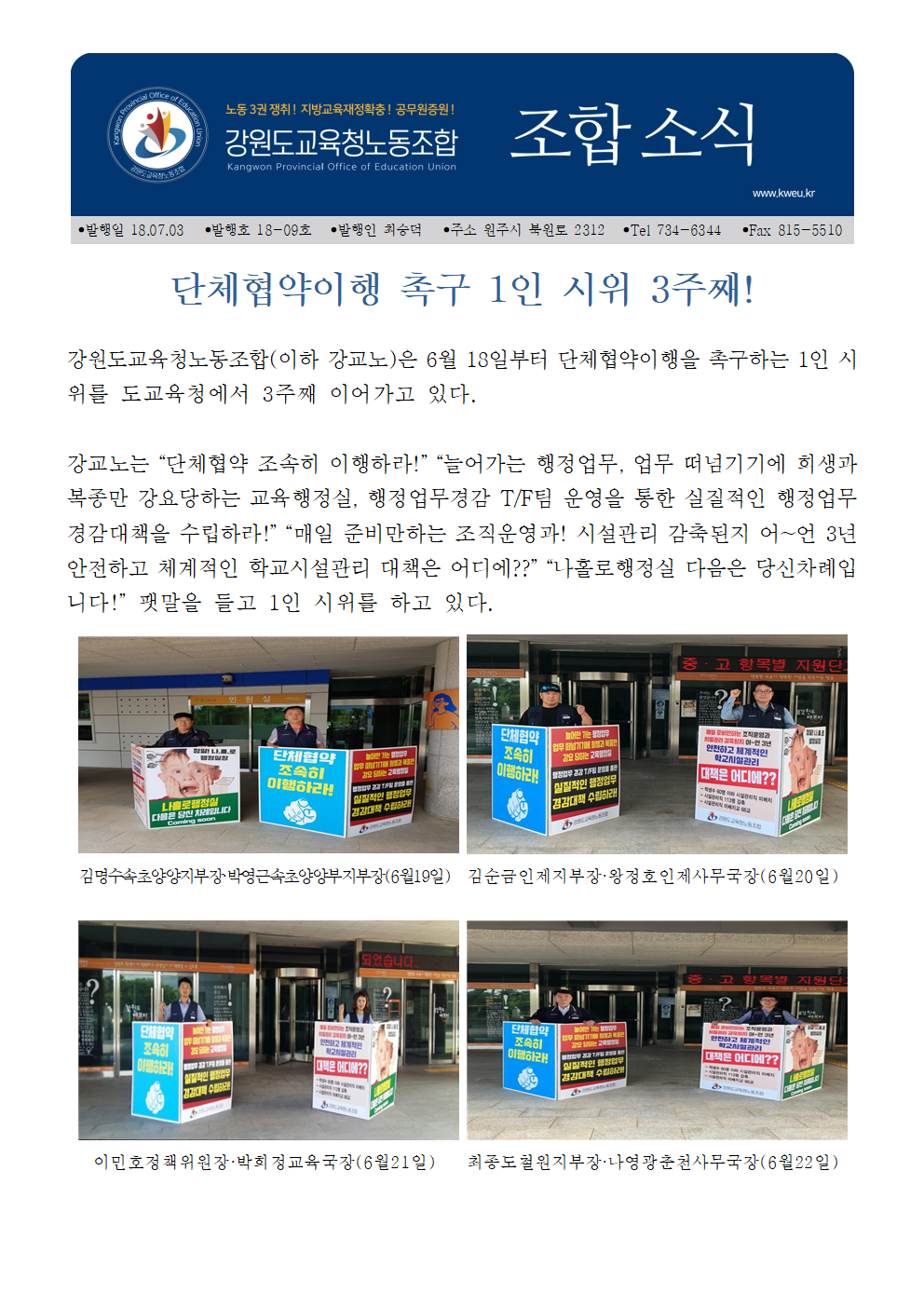 단체협약이행 요구 1인 시위 돌입 [제18-08호]