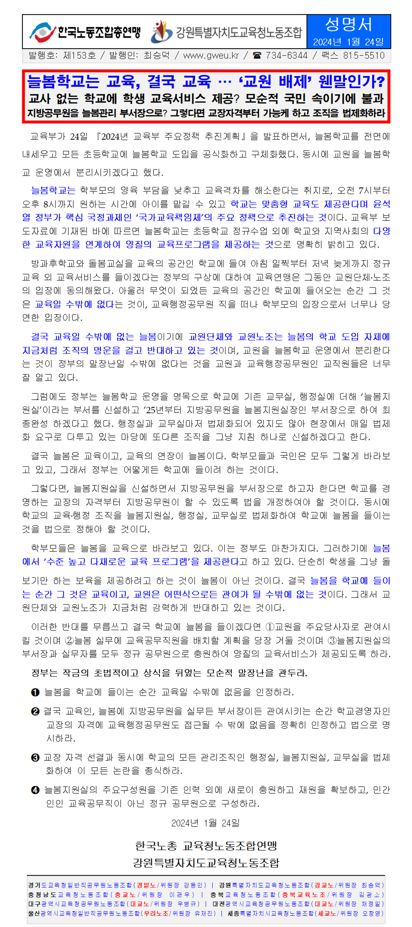 성명서(153호 늘봄학교는 교육, 결국 교육 교원배제 웬말인가.pdf
