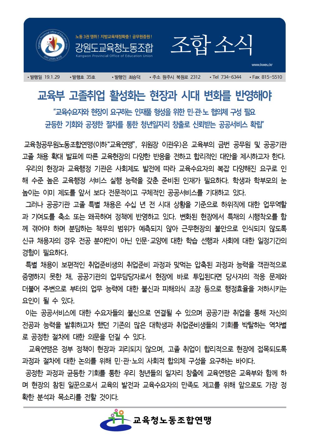 19.1.29 [소식지] 교육부 고졸취업 활성화는 현장과 시대 변화를 반영해야.hwp