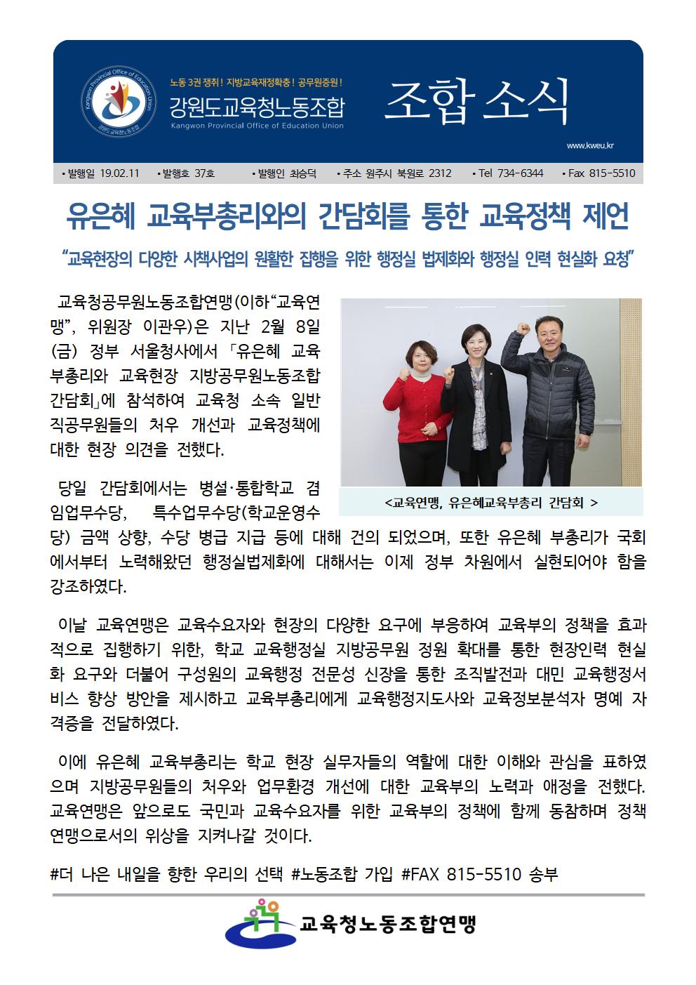 19.2.11 [소식지] 유은혜 교육부총리와의 간담회를 통한 교육정책 제언.hwp