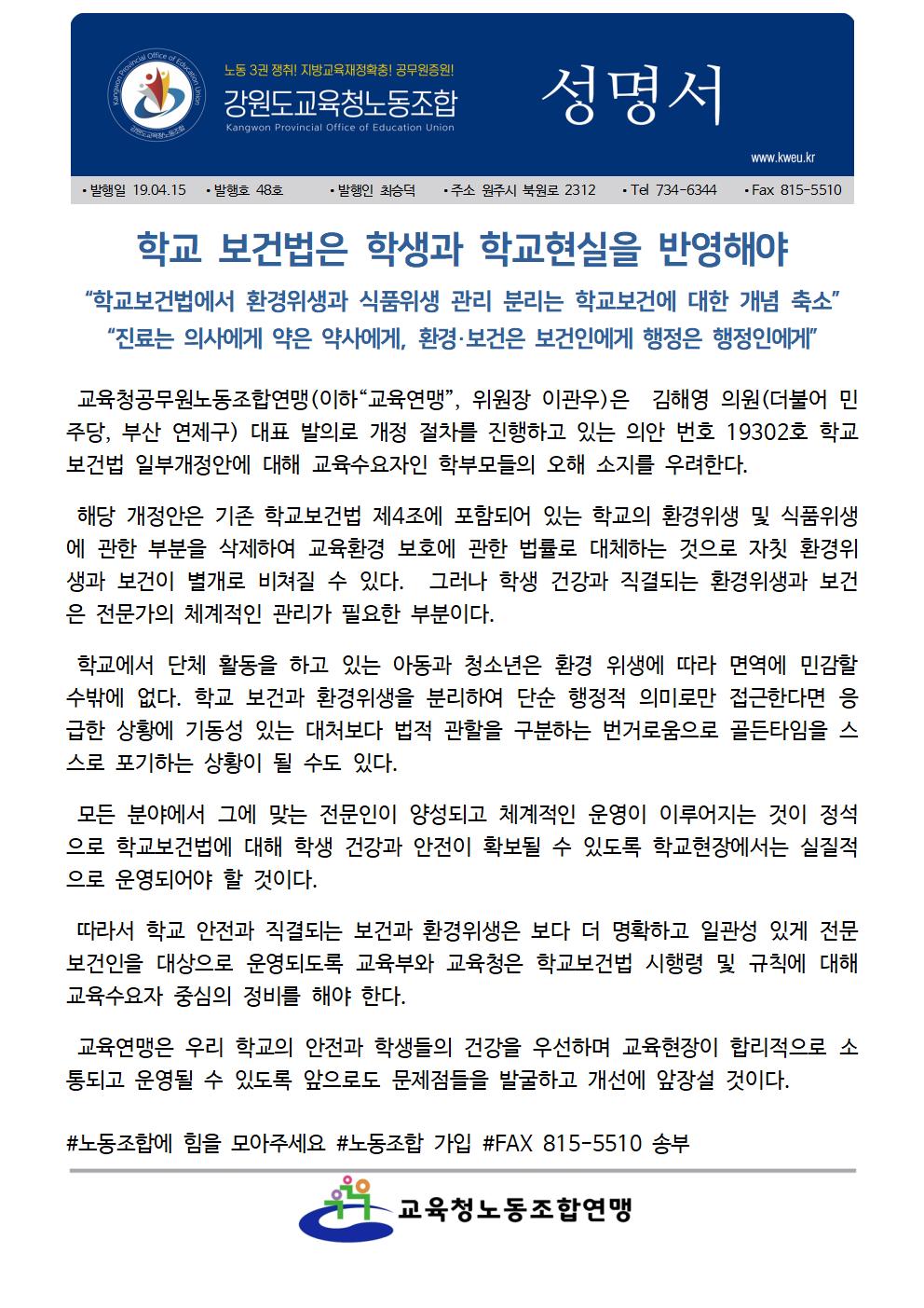 19.4.15 [소식지] 학교 보건법은 학생과 학교현실을 반영해야.hwp