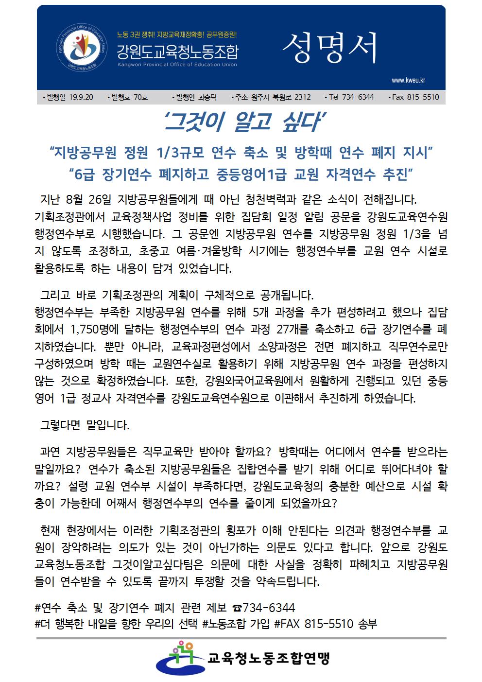 강원교육이라는 이름하에 강요되는 희생