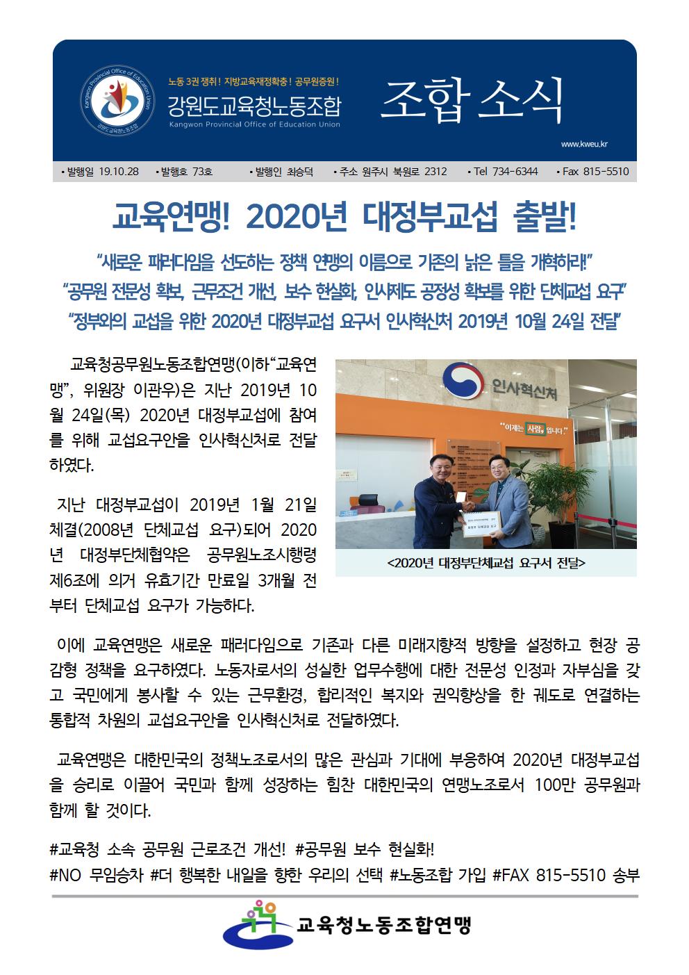 19.10.28 [소식지] 교육연맹! 2020년 대정부교섭 출발!.hwp