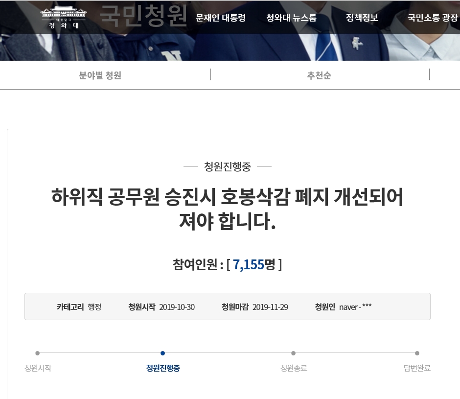[국민청원동참] 하위직 공무원 승진시 호봉삭감 폐지 개선되어져야 합니다.