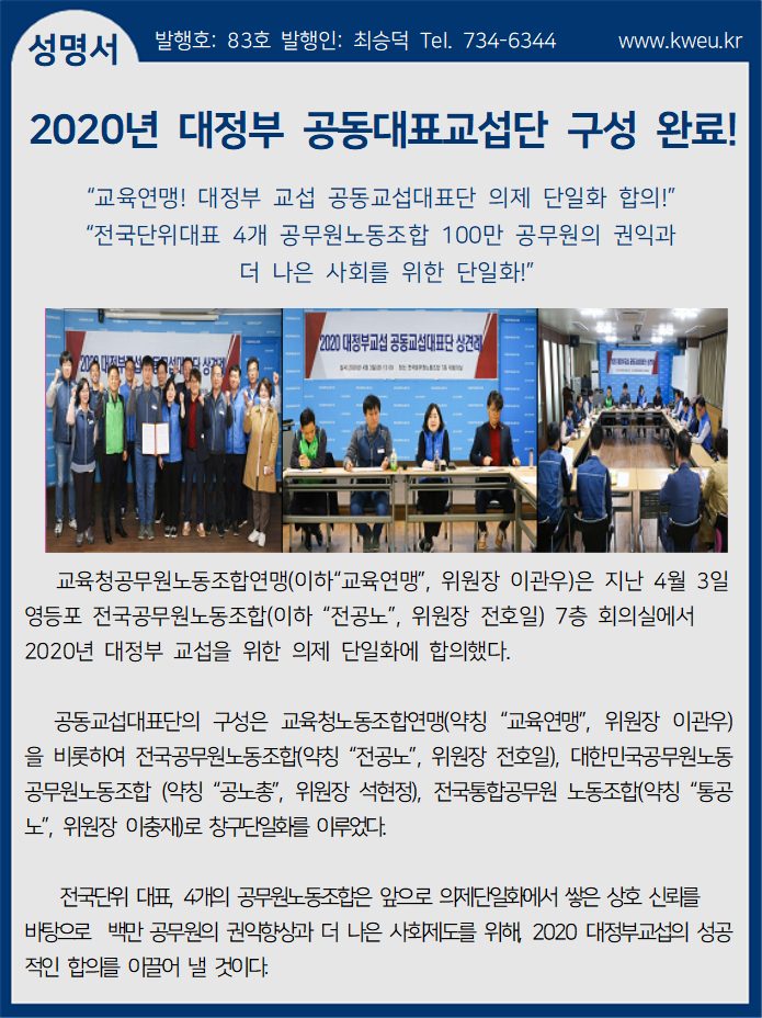 2020년 대정부 공동대표교섭단 구성완료!