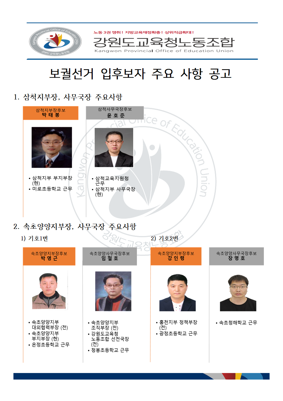 삼척 및 속초양양지부 보궐선거 결과 알림