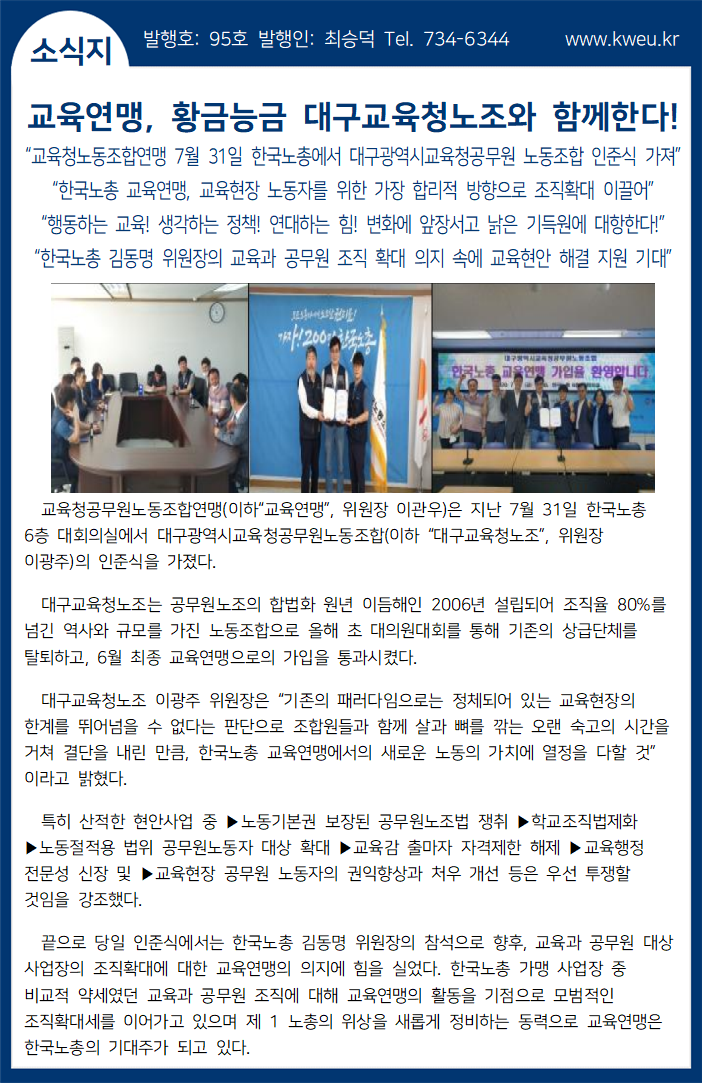 교육연맹, 황금능금 대구교육청노조와 함께 한다!
