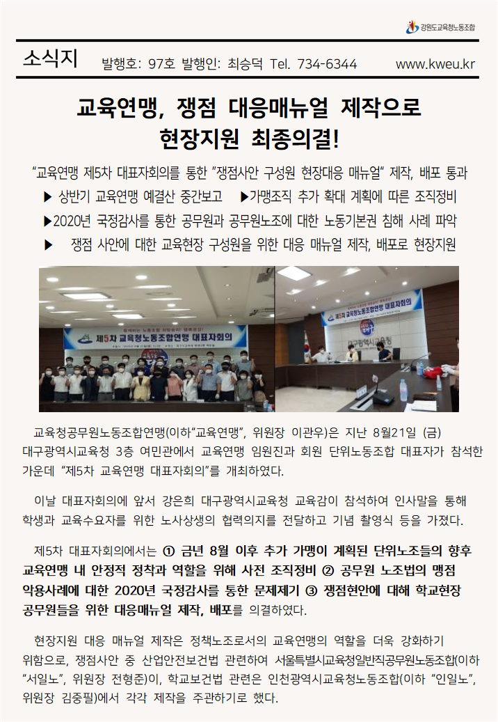 교육연맹 쟁점 대응매뉴얼 제작으로 현장지원 최종의결