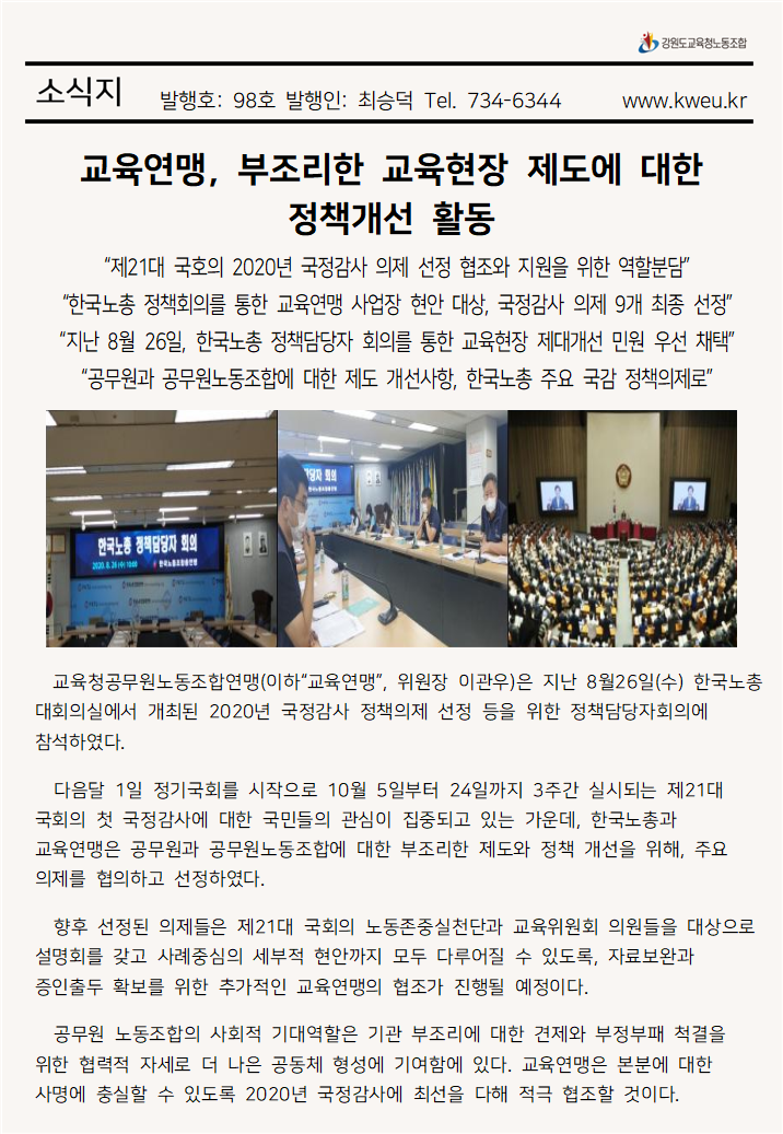교육연맹, 부조리한 교육현장 제도에 대한 정책개선 활동